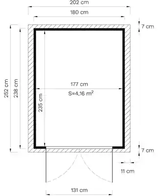 - Profondeur (avancée du toit incluse) : 252 cm