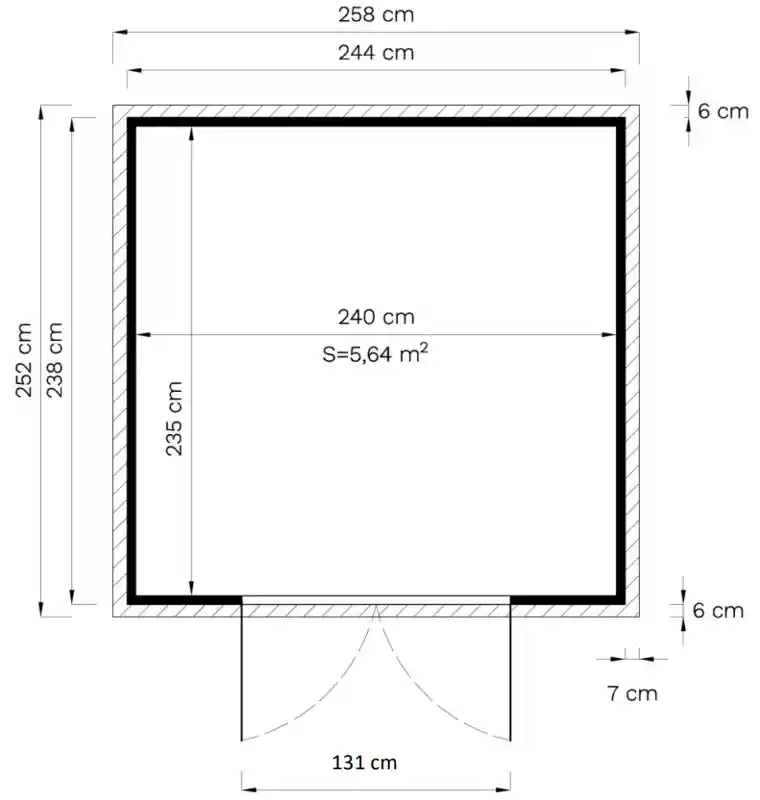• Profondeur (avancée du toit incluse) : 252 cm
